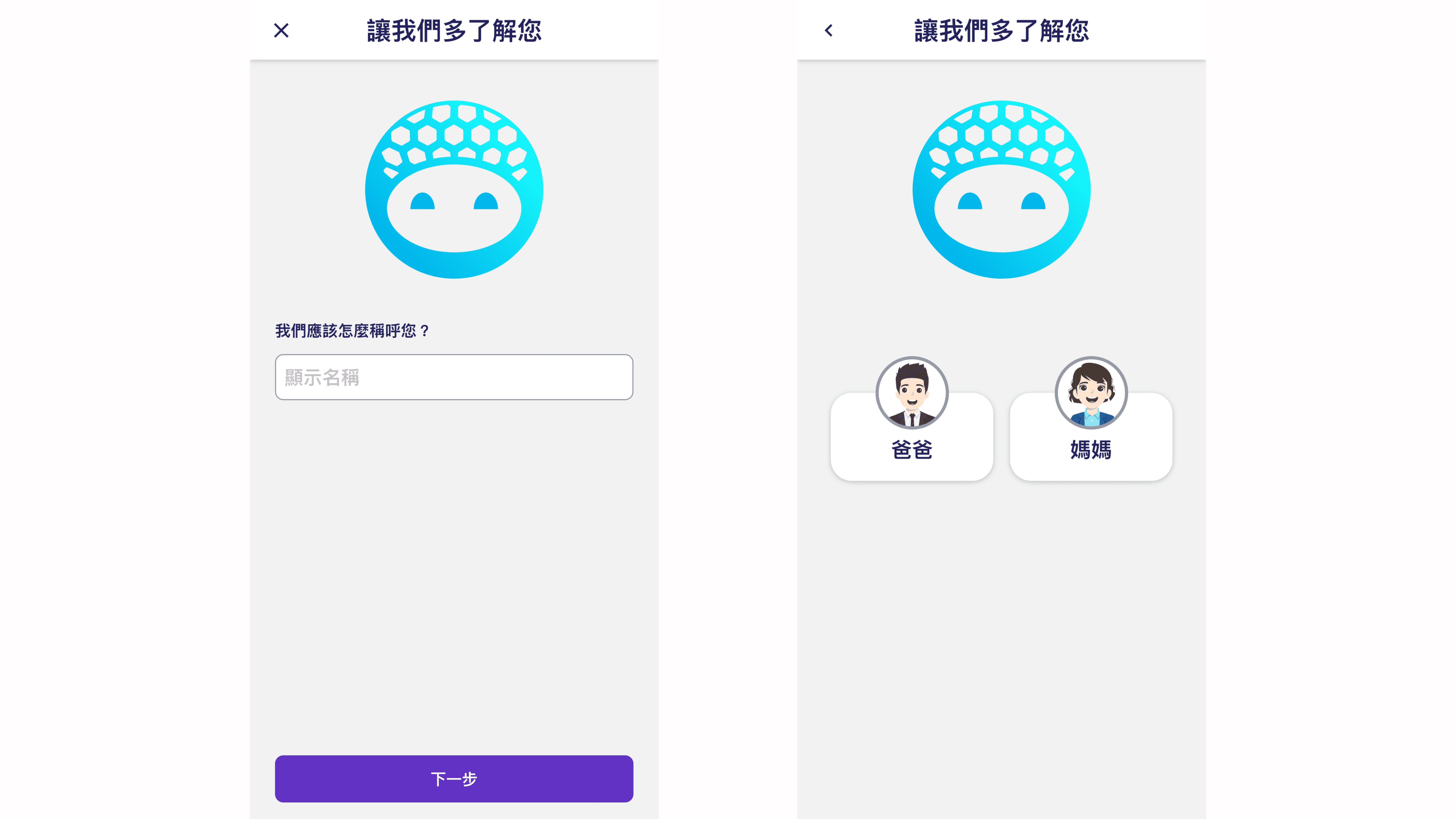 填寫你的名稱及選擇爸爸 / 媽媽。