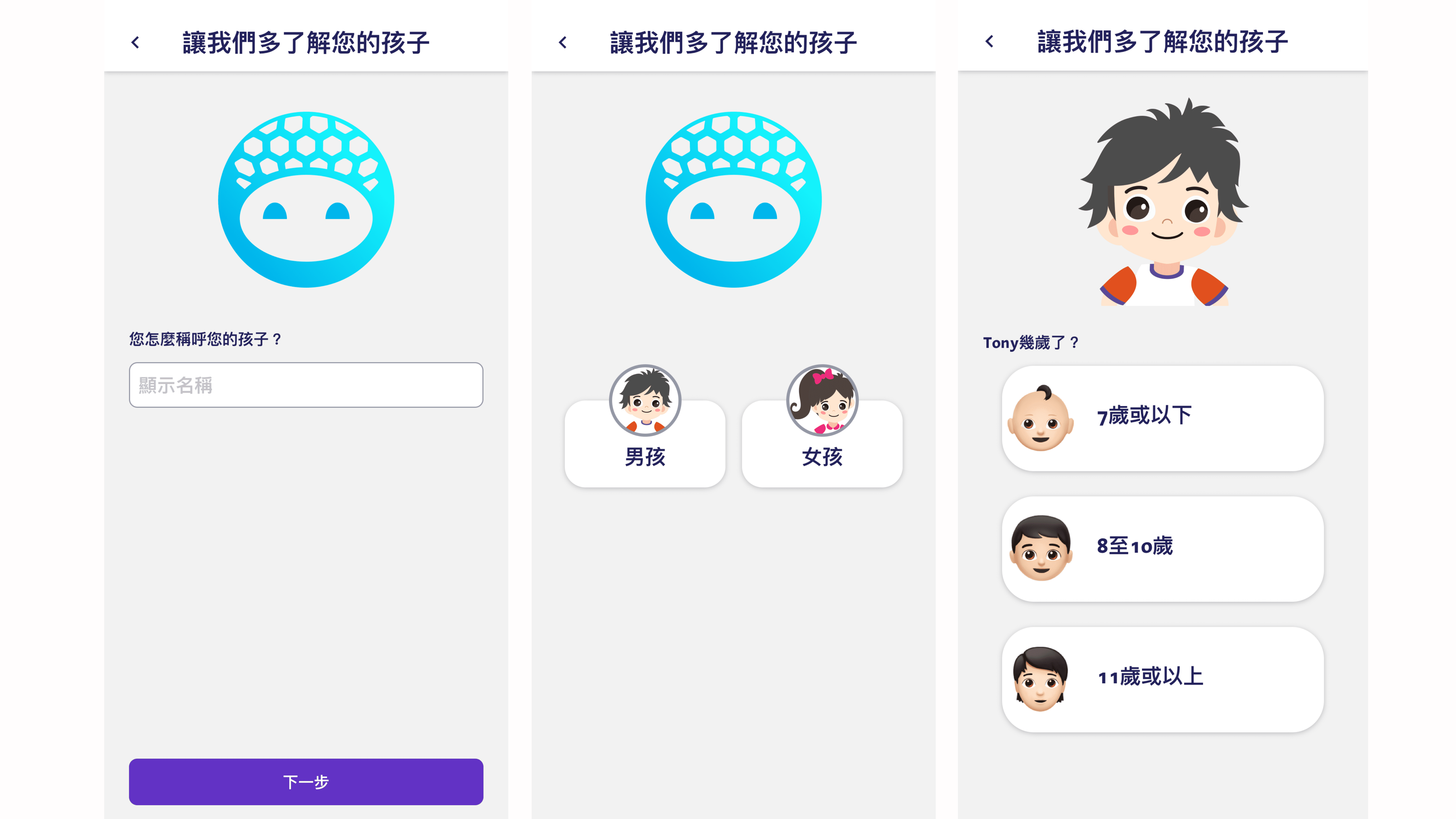 填寫子女的名稱,並選擇孩子性別和歲數。